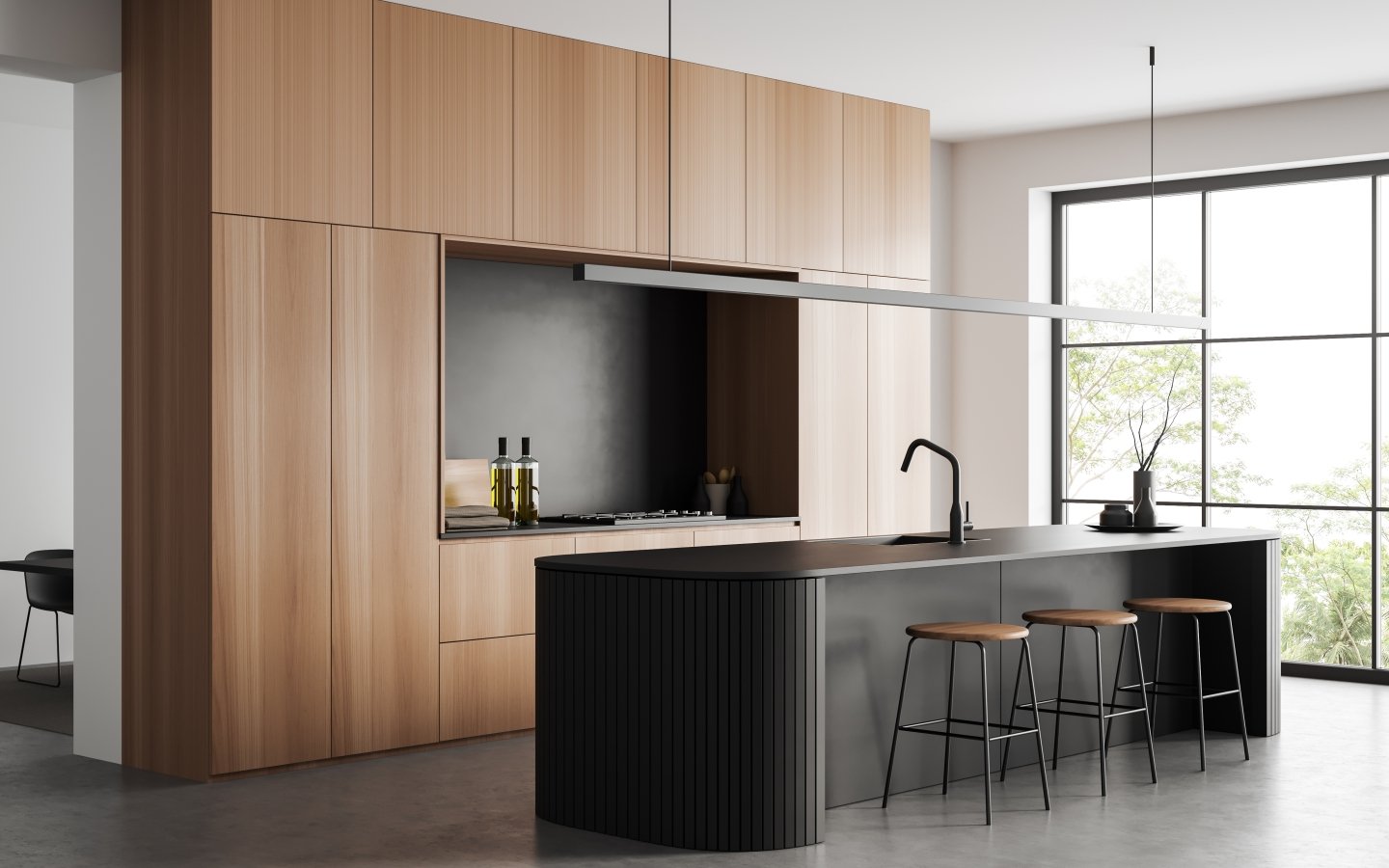 In general, a modern kitchen should have hardware that has a more contemporary look. Hidden pulls, finger pulls, simple shapes with very little detail, very straight, oversized long pulls with simple flat front drawers.